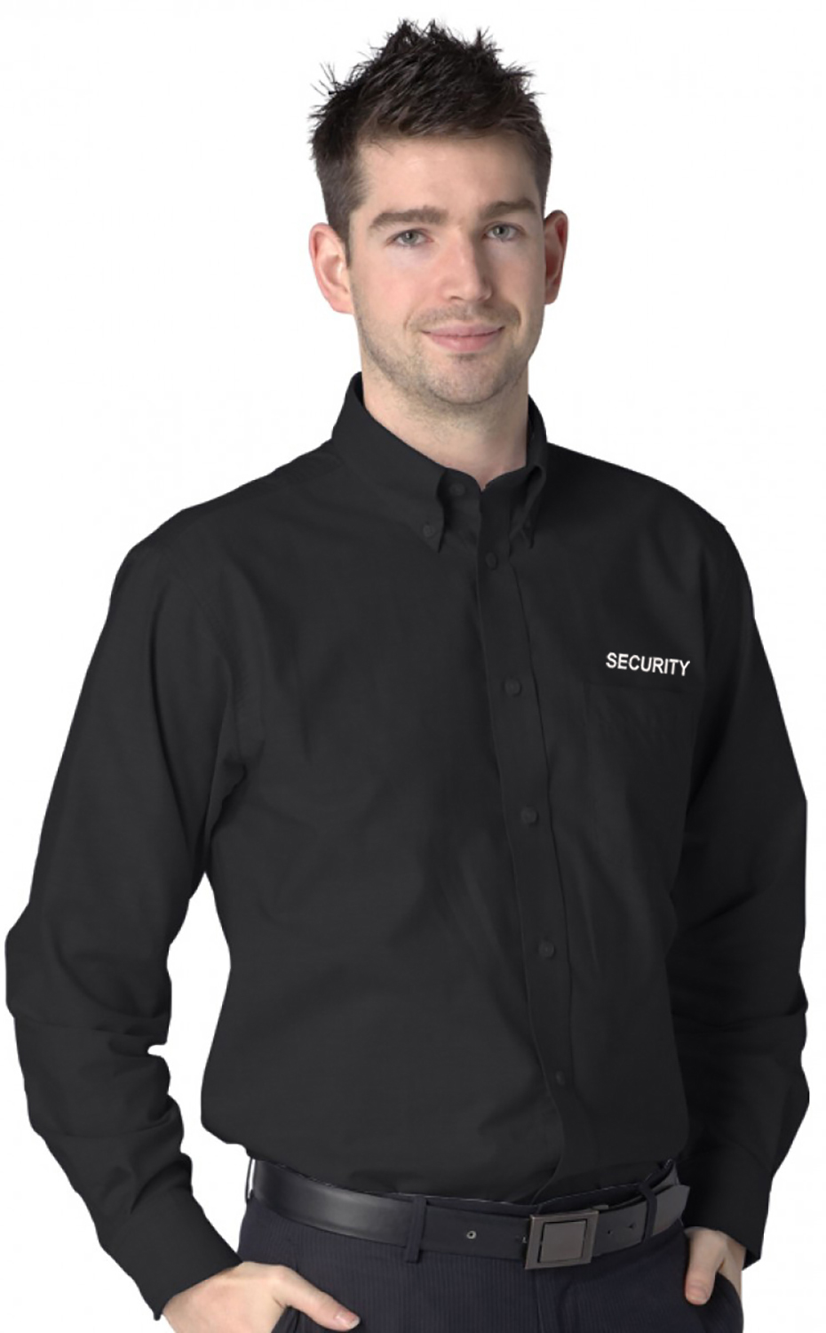 Embroidered SECURITY Black Long Sleeve Oxford Shirt