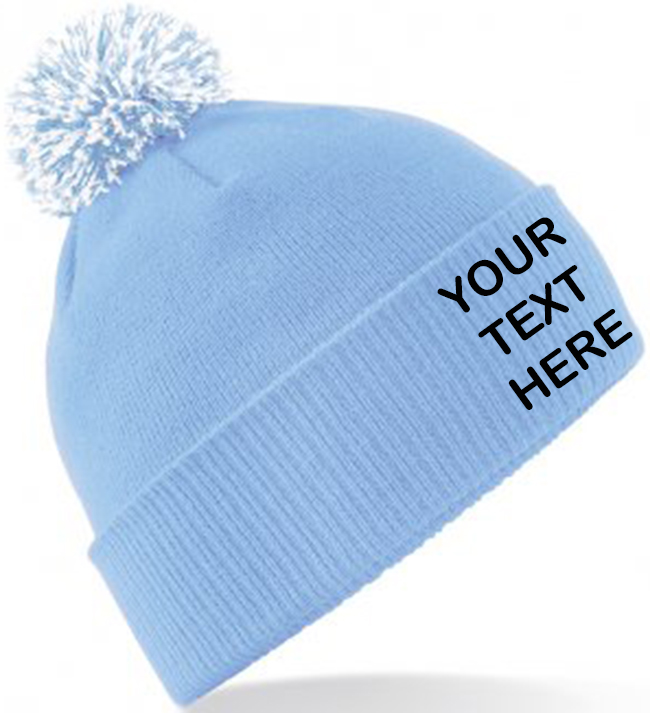 Be the first to review “Personalised Sky Blue/White Contrast PomPom Beanie” Cancel reply