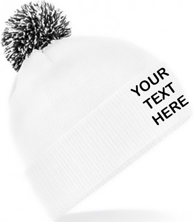 Personalised White/Black Contrast PomPom Beanie